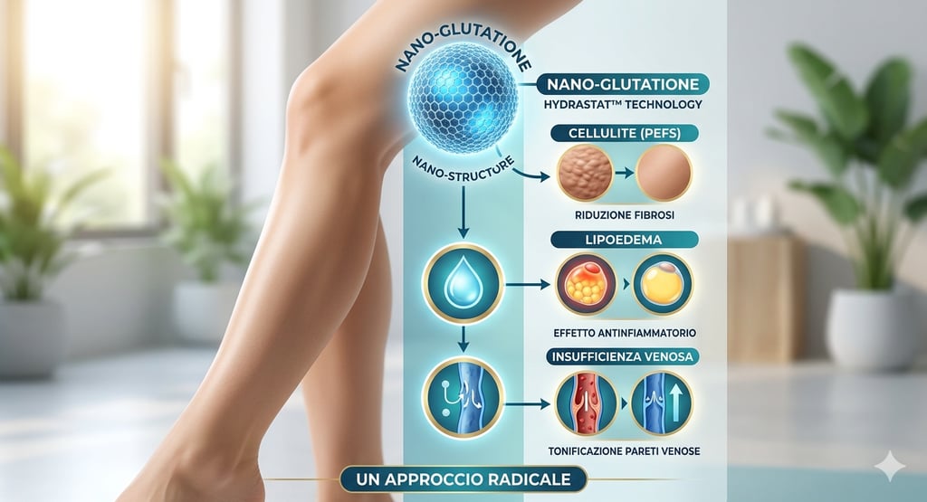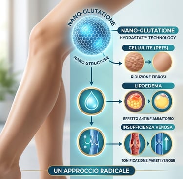 L’estetica clinica e la medicina vascolare stanno vivendo una rivoluzione silenziosa. Per decenni, l’approccio a inestetismi e patologie come la cellulite (PEFS), il lipoedema e l’insufficienza venosa è stato puramente meccanico o topico: massaggi, calze a compressione, creme drenanti. Tuttavia, la ricerca d’avanguardia ci dice oggi che la chiave per risolvere queste condizioni non si trova in superficie, ma a livello molecolare. L'introduzione del Nanoglutatione, veicolato tramite la tecnologia brevettata HydraStat™, rappresenta il "punto di rottura" con i trattamenti tradizionali. Non si tratta di un semplice integratore, ma di un approccio radicale che agisce sul cuore del problema: l'infiammazione cronica di basso grado e lo stress ossidativo dei tessuti.